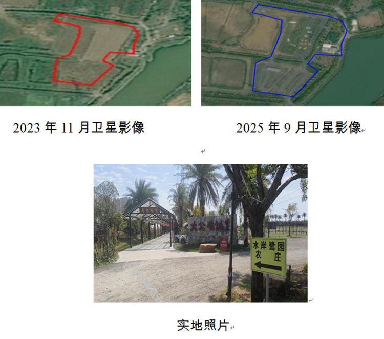5。广东省珠海新隆水产养殖科技无限公司违法占地36。98亩扶植越野车。珠海新隆水产养殖科技无限公司未经核准私行占用位于珠海市喷鼻洲区南屏镇广昌社区的国有农用地36。98亩(此中耕地13。91亩),扶植珠海水岸鹭园生态岛越野车项目,实地建成泊车场、越野车锻炼场地、户外拓展场地、饭馆等非农设备。